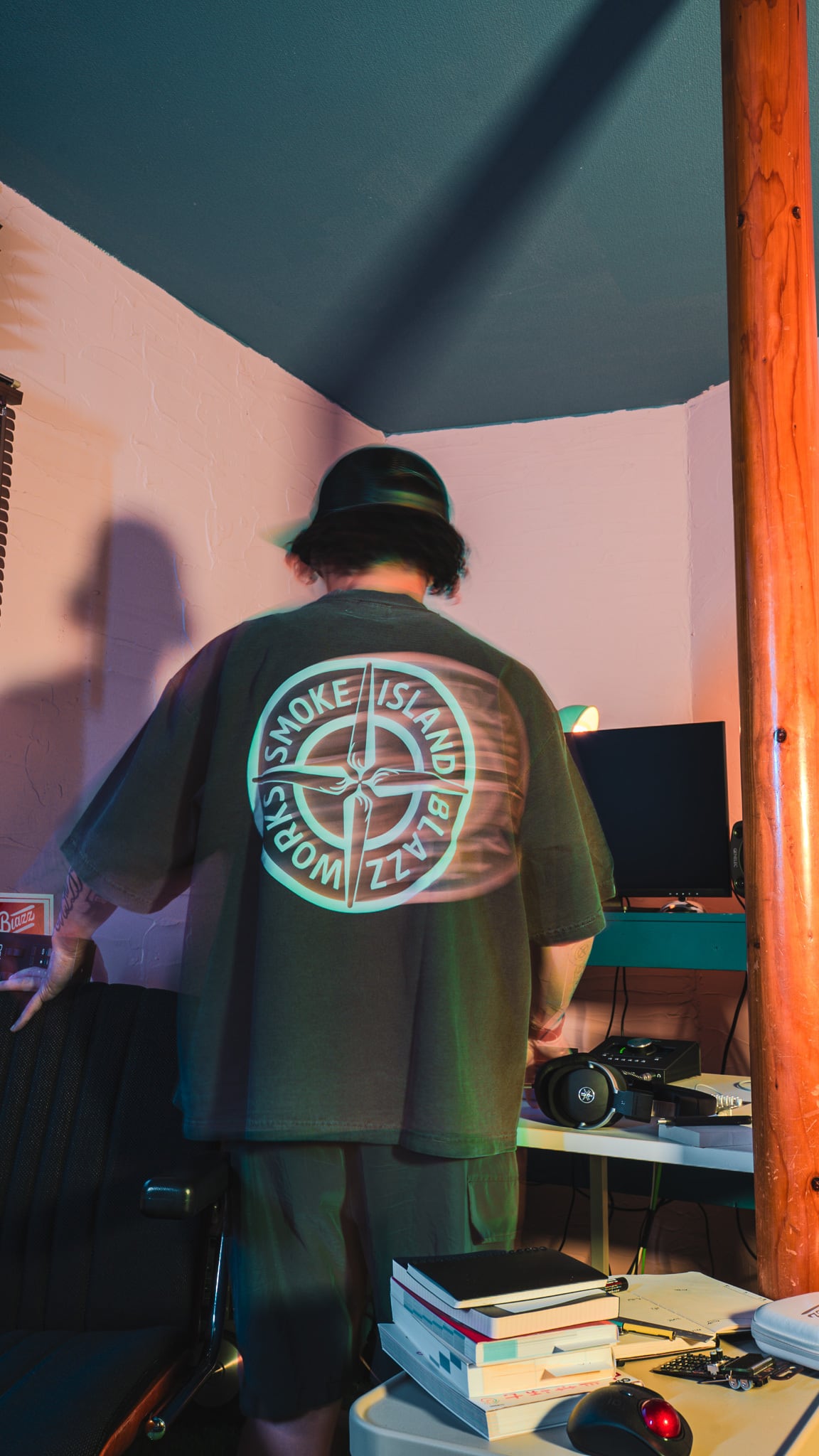 ブランドの世界観を象徴する”SMOKE ISLAND”ロゴを刺繍で表現。BACKは大版使いのラバーインクシルクスクリーンを京都の職人が丁寧に仕上げました。
