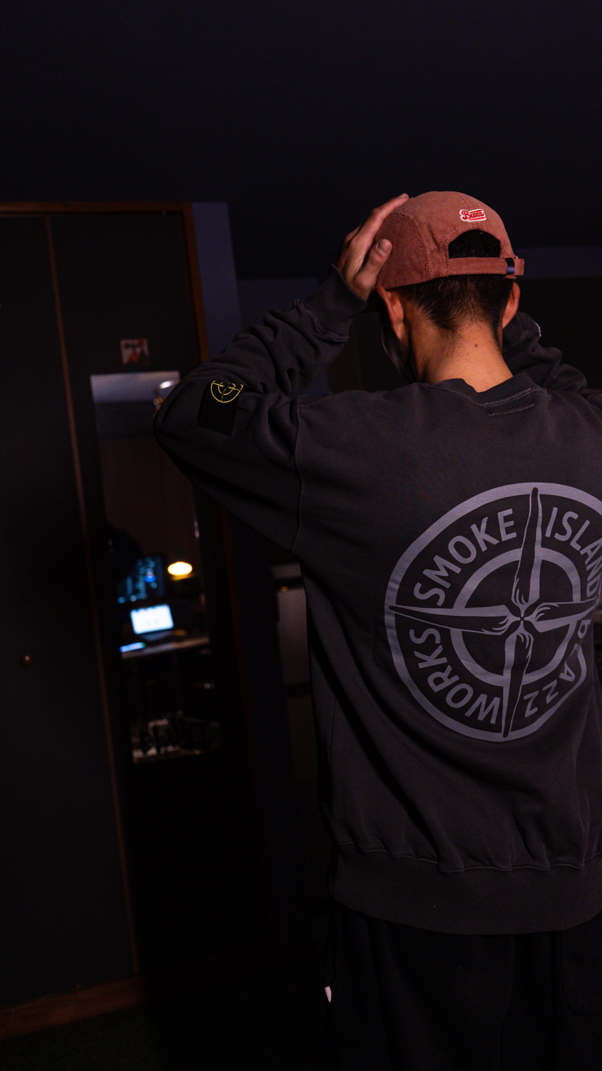 裏糸にオープンエンド糸(OE糸)を使用し、シャリ感とざっくりした肌触りを実現したピグメント裏毛スウェット。綿100%のヘビーな質感に、独特の色落ちを楽しめる顔料染めを合わせることで、ヴィンテージさながらの雰囲気に仕上げています。背面にはSMOKE ISLANDのシンボルロゴを大きくプリントし、1枚でも主役になる存在感を持たせました。