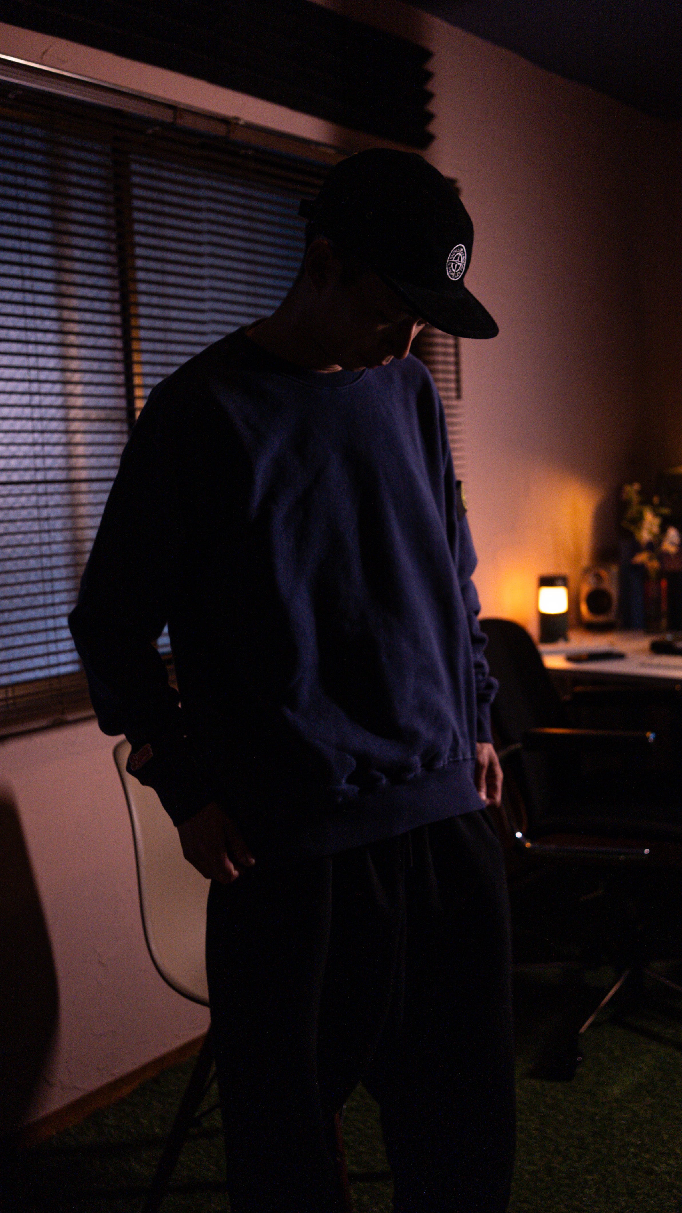 深みのある“Navy”カラーが魅力の、ピグメント染めスウェット。