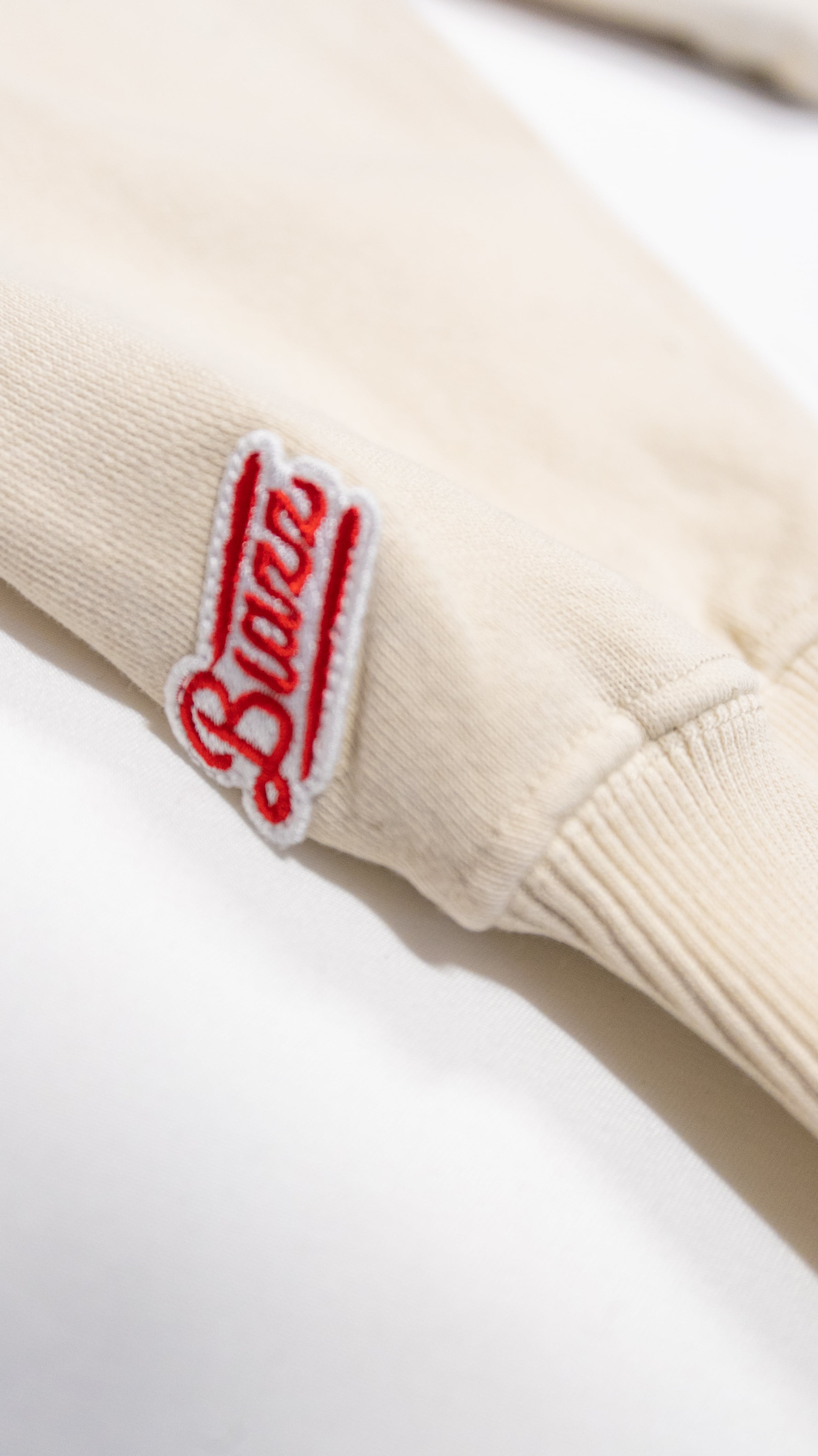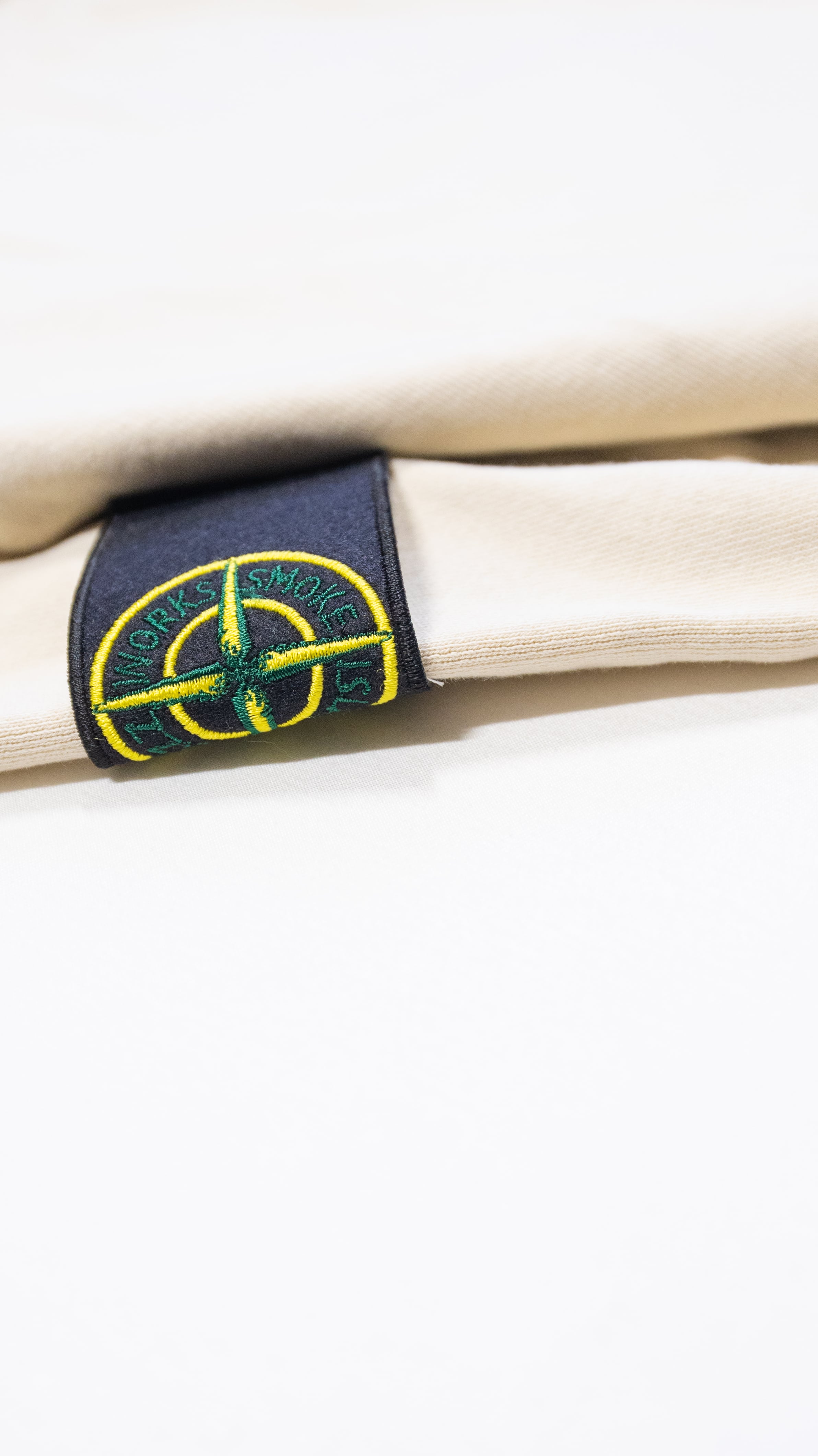裏糸にオープンエンド糸(OE糸)を使用し、シャリ感とざっくりした肌触りを実現したピグメント裏毛スウェット。綿100%のヘビーな質感に、独特の色落ちを楽しめる顔料染めを合わせることで、ヴィンテージさながらの雰囲気に仕上げています。背面にはSMOKE ISLANDのシンボルロゴを大きくプリントし、1枚でも主役になる存在感を持たせました。
