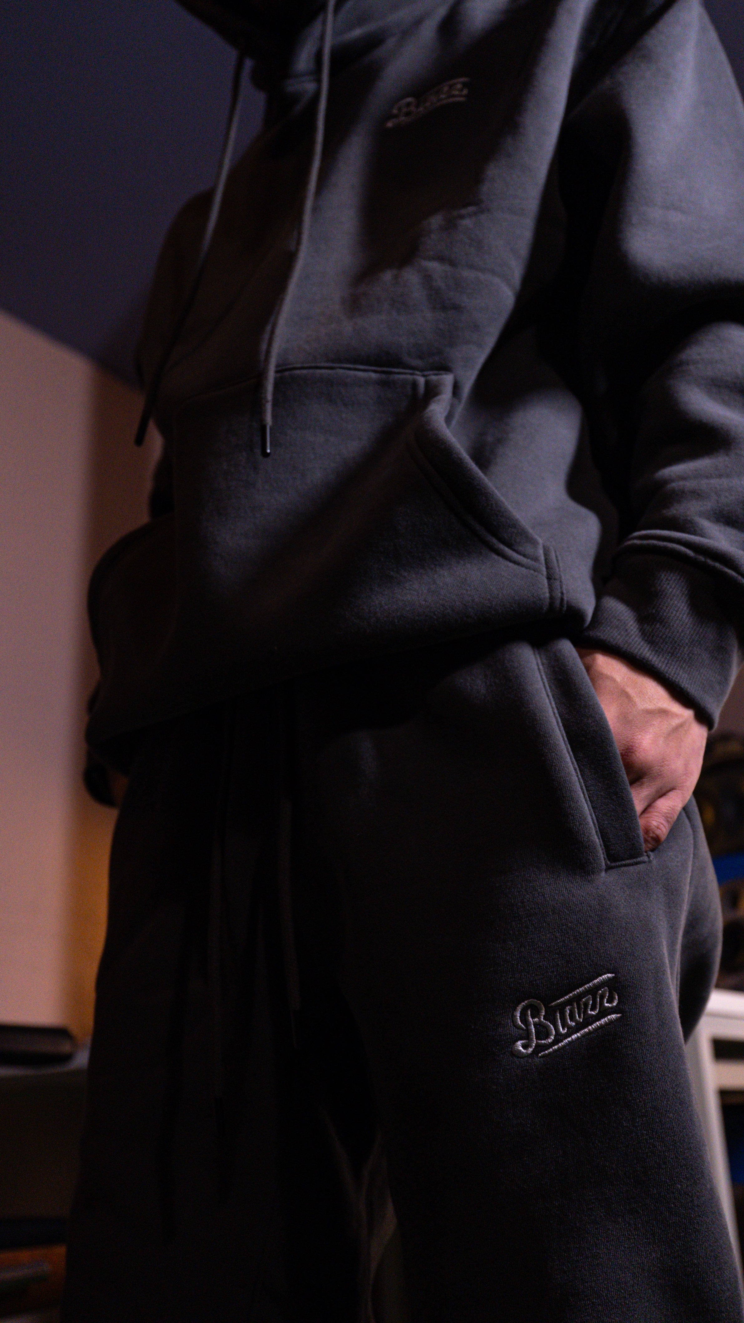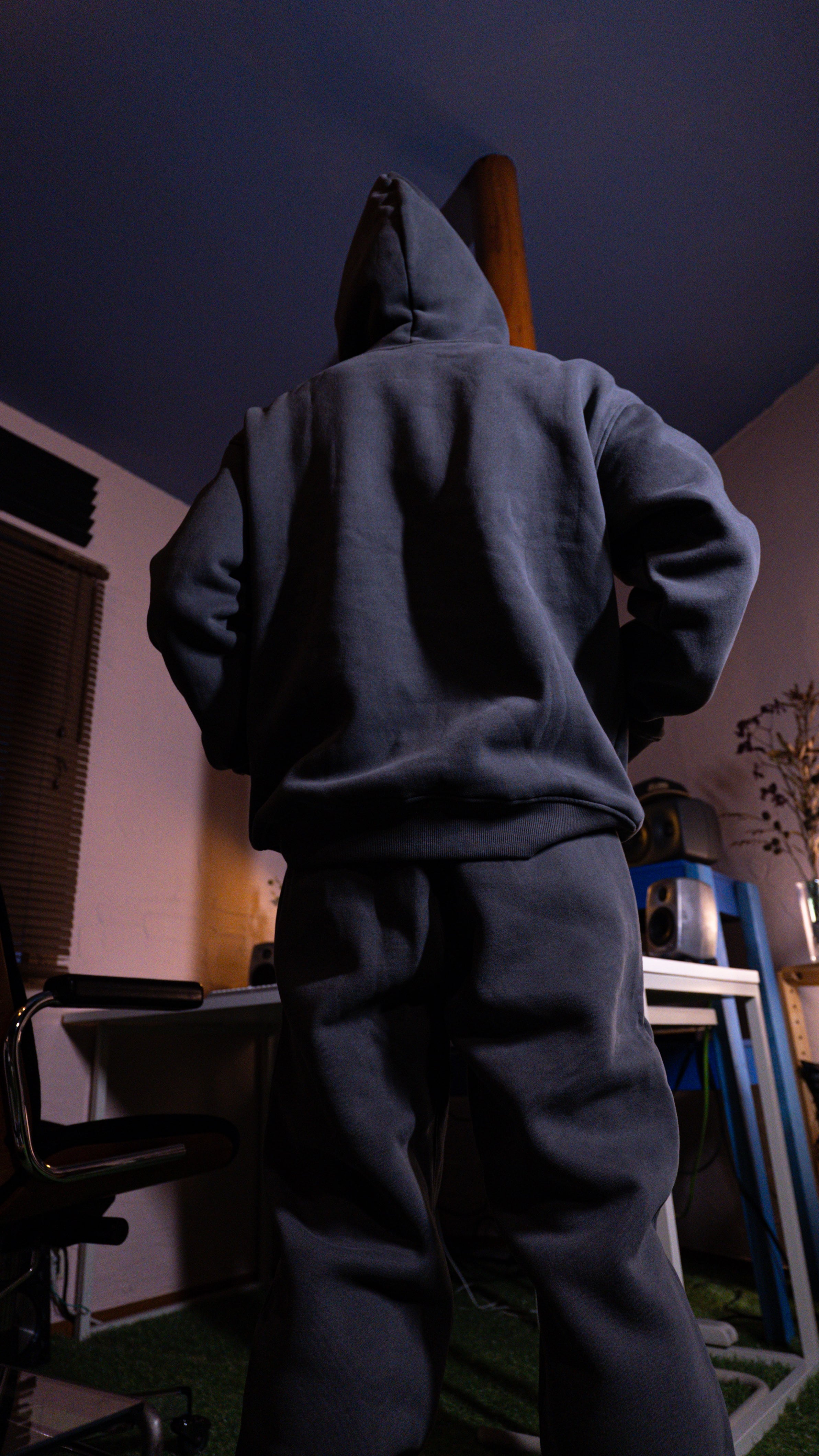 LOGO Heavy Oz Hoodie と Sweat Pants は、セットアップとして成立するバランスで設計しています。トップスはビッグシルエット、パンツはスタンダードフィット。